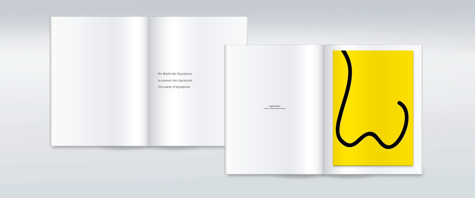 Die Design-Aufgabe für „Le Pouvoir“ liegt in der Darstellung einer konsistenten Werkreihe. Auf diese Konsistenz antwortet das Design mit einer Anmutungsqualität, die dem Inhalt zukommt. Die Werkreihe trägt den Titel „Head Lines“ und setzt die Signaturen und damit die Entscheidungs-Akte der Machthaber unserer Welt in suggestive Bildkörper um. Es liegt auf der Hand, dass solche Bilder mit Bedeutung aufgeladen sind.