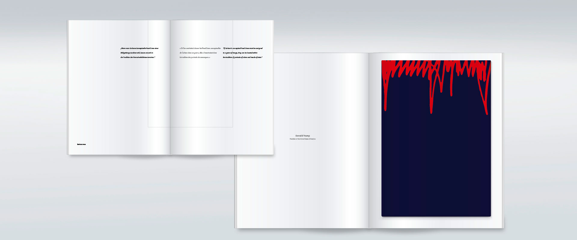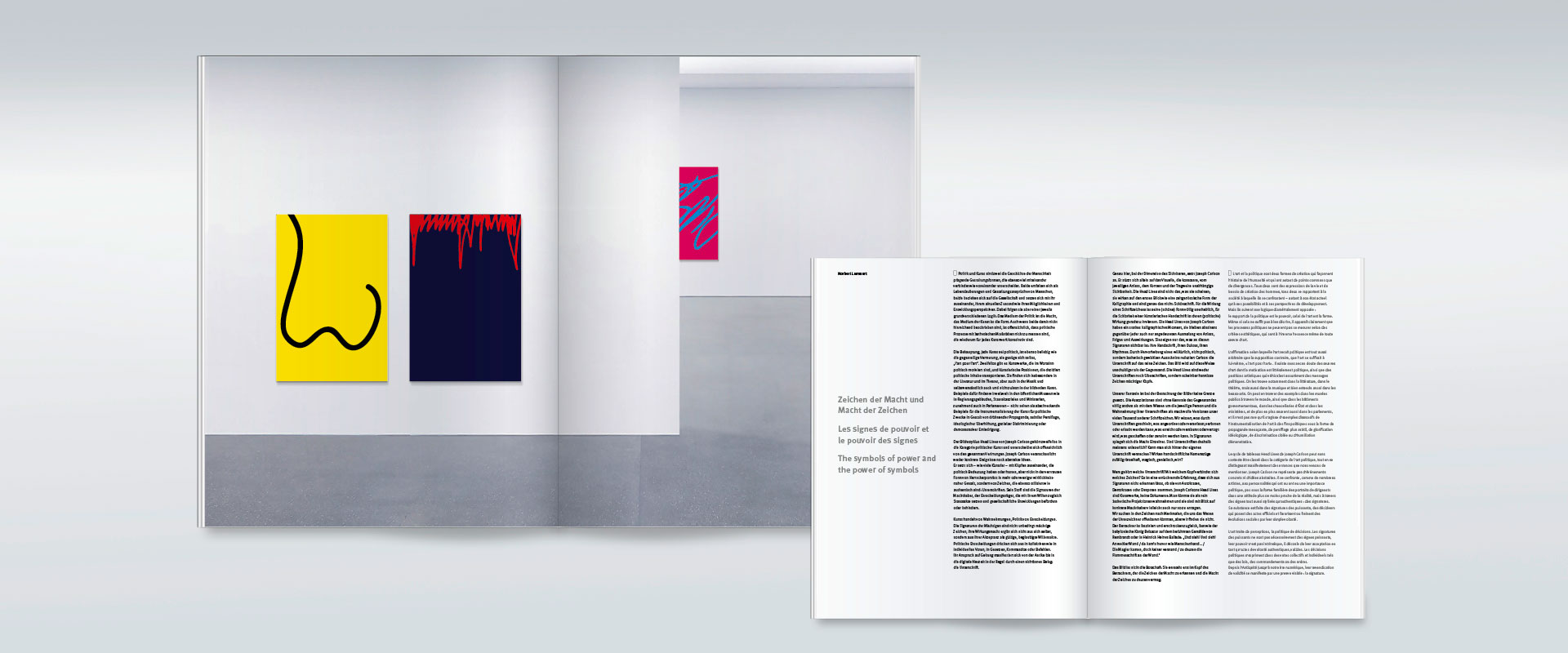 Kunst-Publikationen stellen an das Buch-Design den höchsten Anspruch. Das liegt in der Natur des Genres. identis begegnet diesem Anspruch mit der Gestaltung einer Monografie, die vom Bild und vom Text zugleich lebt. Das Buch, das anlässlich der multinationalen Ausstellungsreihe „Le pouvoir“ erscheint, enthält Essays prominenter Autoren aus der Politik und der Kunstwissenschaft, die sich auf den Bilder-Zyklus Head Lines von Joseph Carlson konzentrieren. Typografie wird somit zum Resonanzraum für eine hoch ästhetische Bildstrecke.