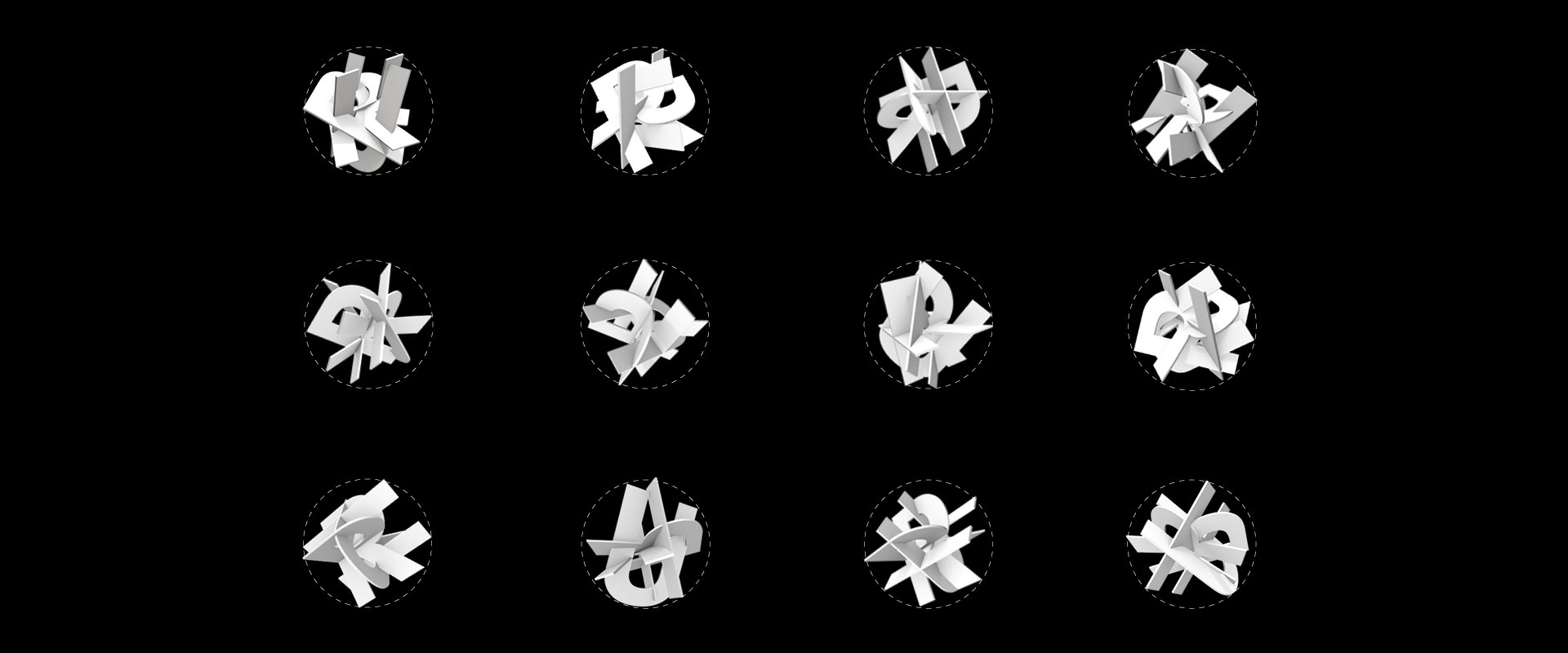 Der Wort-Charakter wird aufgelöst, indem die Buchstaben ihrer Reihenfolge enthoben sind. Sie bleiben ohne Wortbindung und bilden damit unbegrenzte Kombinationsmöglichkeiten ab. Aus dem Wort entstehen Bilder. Buchstaben gewinnen Tiefe und bilden einen gemeinsamen Raum, den Raum ihrer skulpturalen Erscheinung.