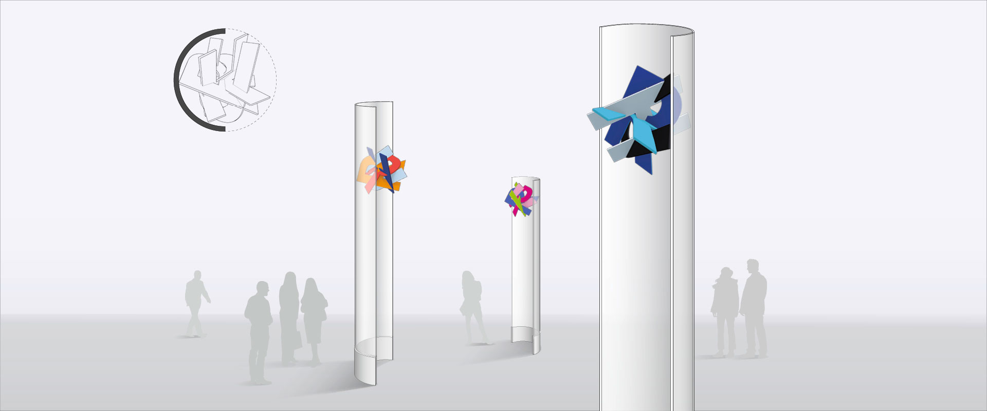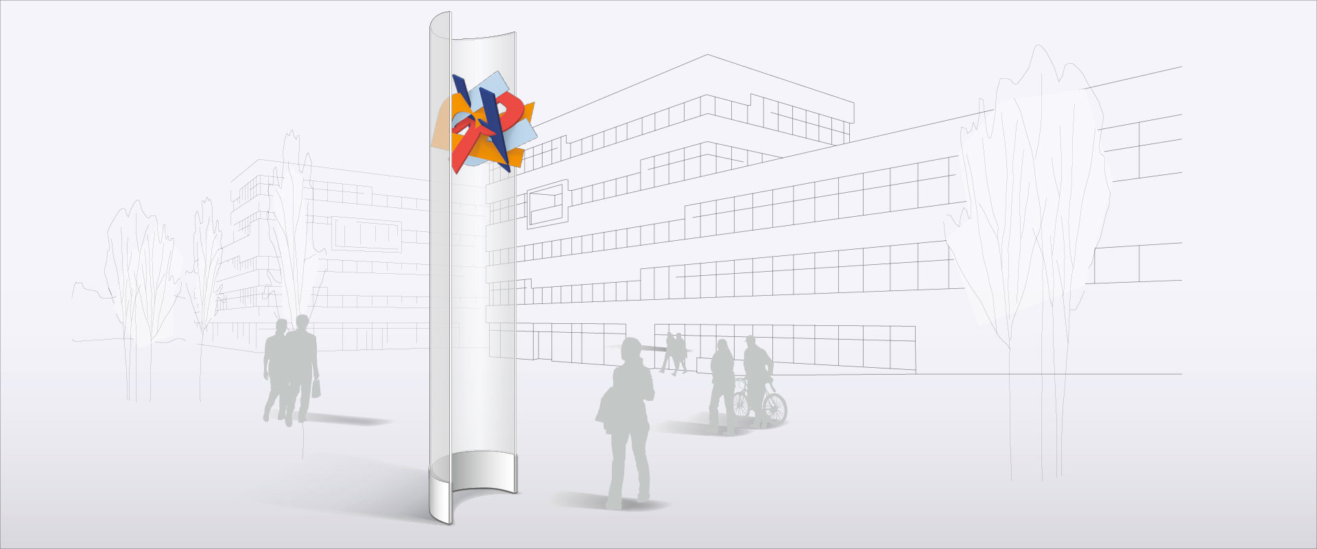 Sie assoziieren einen molekularen Kern und eine unablässige Bewegung. Die Bildkraft geht weit über die Dimension eines signethaften Zeichens hinaus und deutet den Kosmos der Wissensmetropole an.