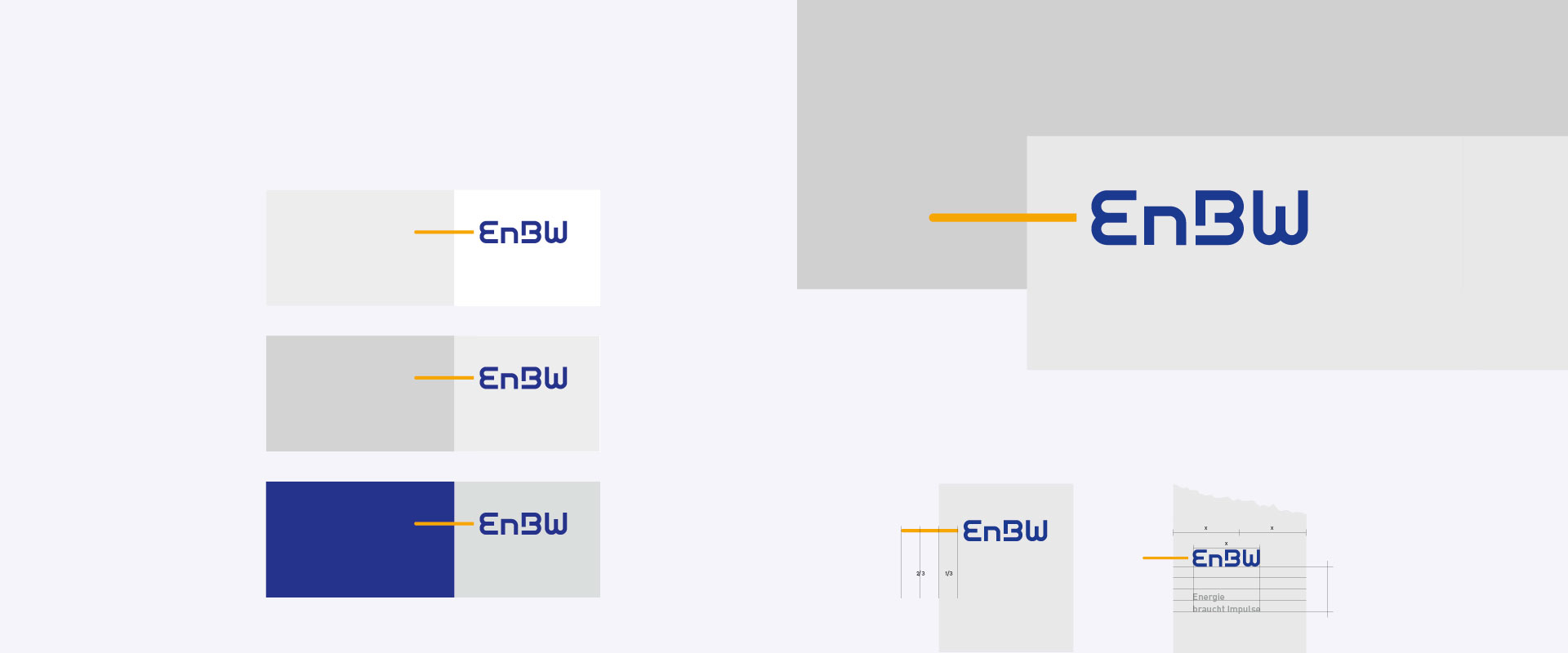 Der Markenkern „Impulse geben und Impulse aufnehmen“ drückt sich in der Impulslinie aus. Sie ergänzt als aussagekräftiges Bildelement den Schriftzug EnBW. Die Impulslinie überbrückt Ebenen und stößt in neue Räume vor. Damit zeichnet sie ein Bild für Energiefluss, Verbindung und Dynamik.