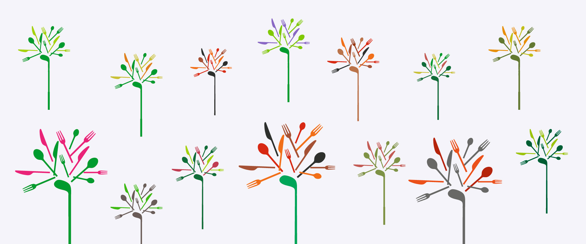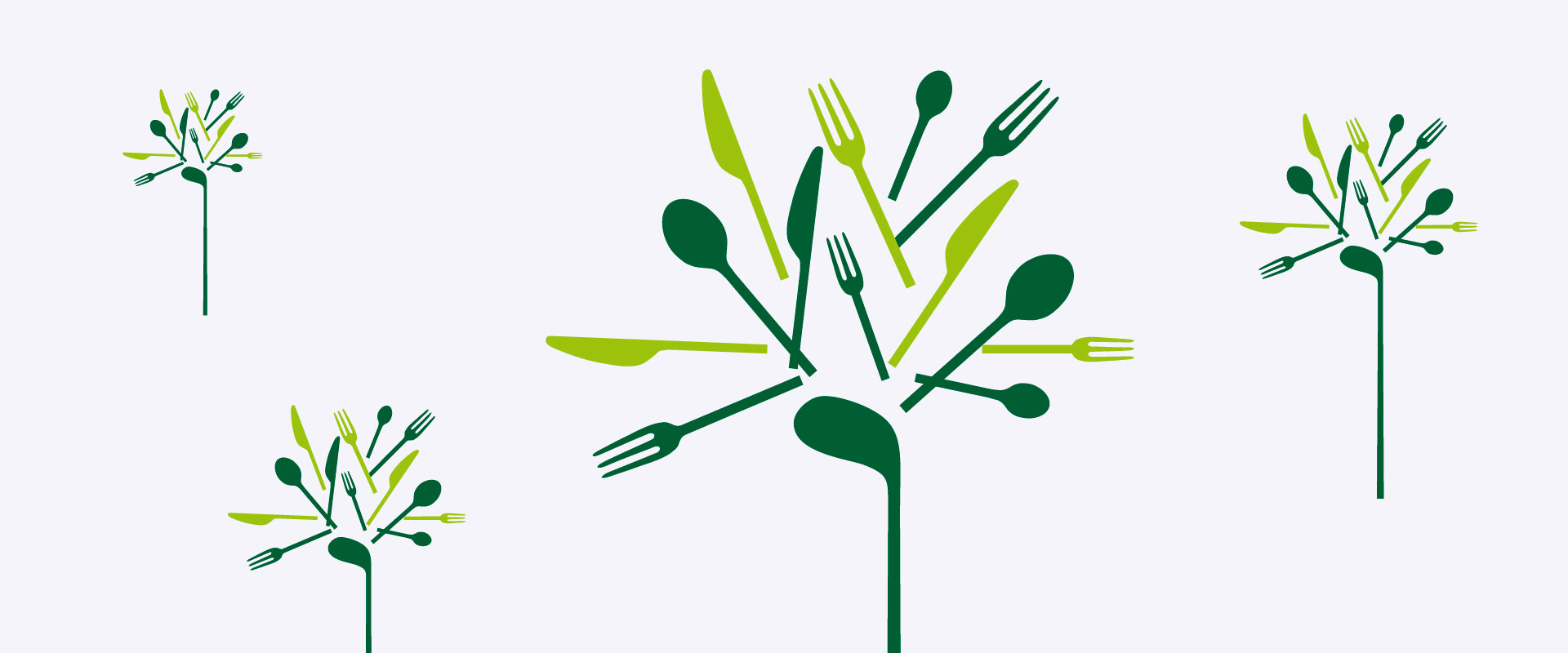 Die Bild-Marke gibt dem klangvollen Namen die angemessene Resonanz. Ein zartes Baumgewächs sprießt in alle Richtungen. Der aufrechte Golfschläger bildet den Stamm, aus dem mit zentrifugal auseinanderstrebenden Messern, Gabeln und Löffeln die noch junge und frische Baumkrone erwächst. Sie kleidet die Esskultur in eine lebensvolle, naturnahe Ästhetik.