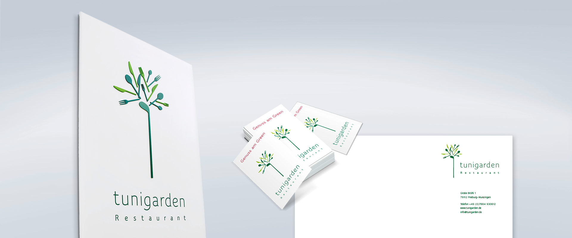 identis hat dafür eine Markenidentität entwickelt. Den Bezugsrahmen bilden die Aspekte Sport, Natur, Kulinarik und die Verbundenheit mit der Region. Entstanden ist ein Markenbild von hoher Aussagekraft und ästhetischer Qualität. Vorausgegangen war die Namensentwicklung für das neue Restaurant. Inspiriert vom großen Grün am Tuniberg entstand der Marken-Name: tunigarden. Diese reizvolle Lautfolge weckt allein schon paradiesische Assoziationen.
