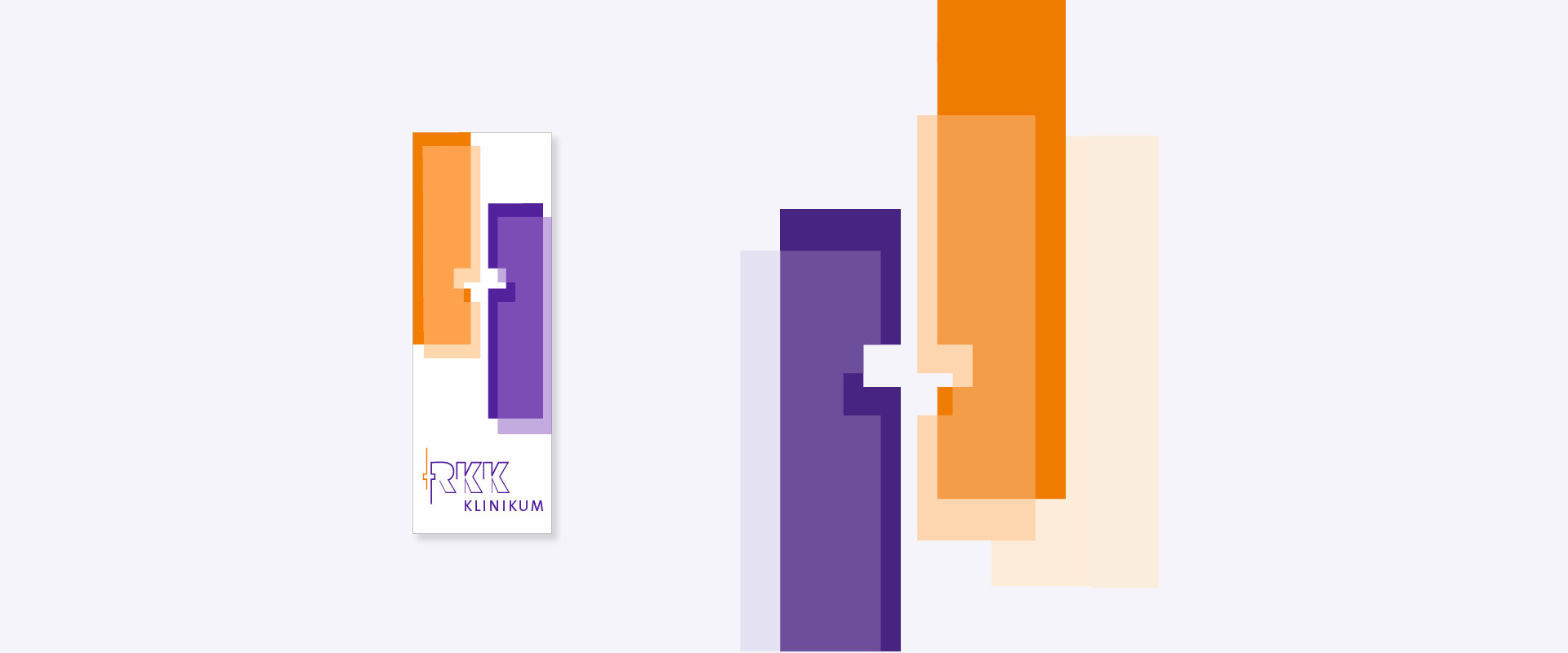Das Markenbild des RKK Klinikums wird durch ein Farbklima, eine Hausschrift und vor allem durch eine Flächengestaltung bestimmt, die sich aus der Formensprache der Wort-Bild-Marke ergibt.
