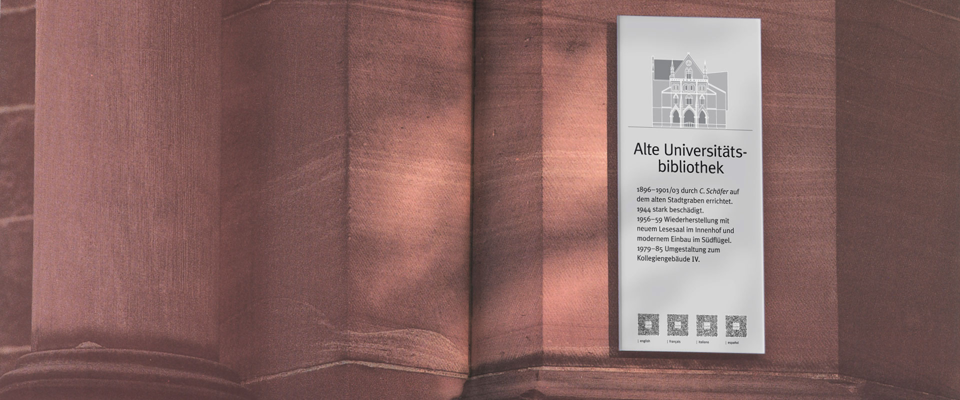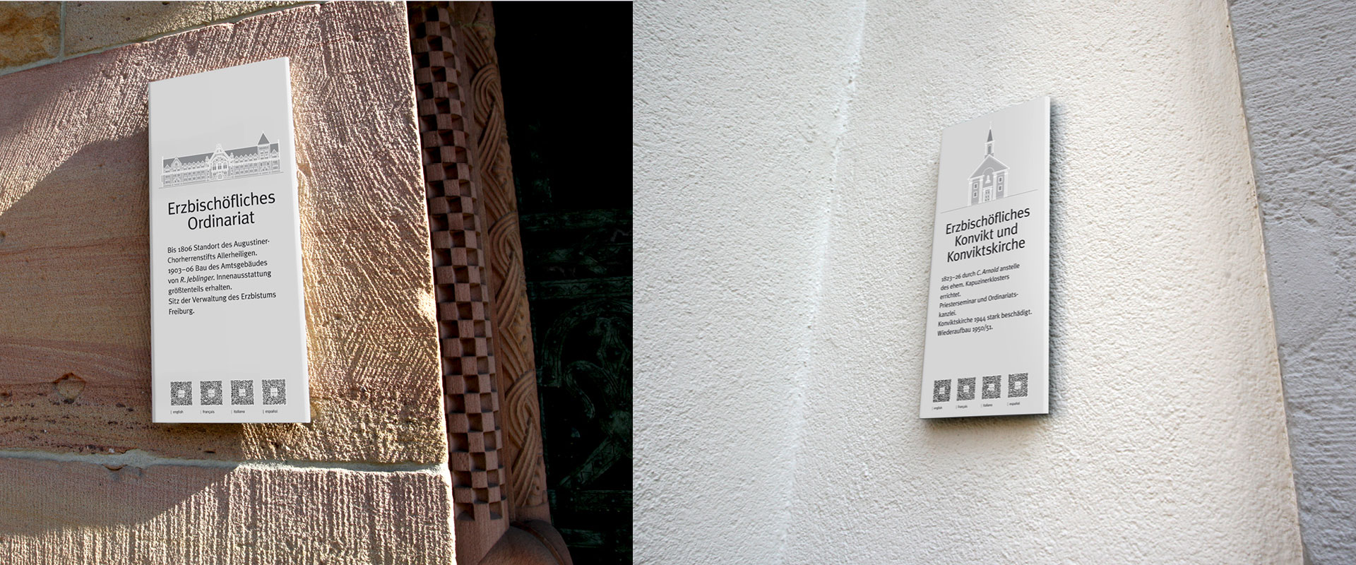 Der Reiz historischer Bauwerke wirkt unmittelbar. Doch ihre Bedeutung wird erst durch eine einfühlsame Hinführung wahrgenommen. Dafür hat identis eine angemessene Ästhetik geschaffen und darüber hinaus die ideale technische Vermittlung: neben der deutschen Sprachfassung viersprachige QR-Codes.