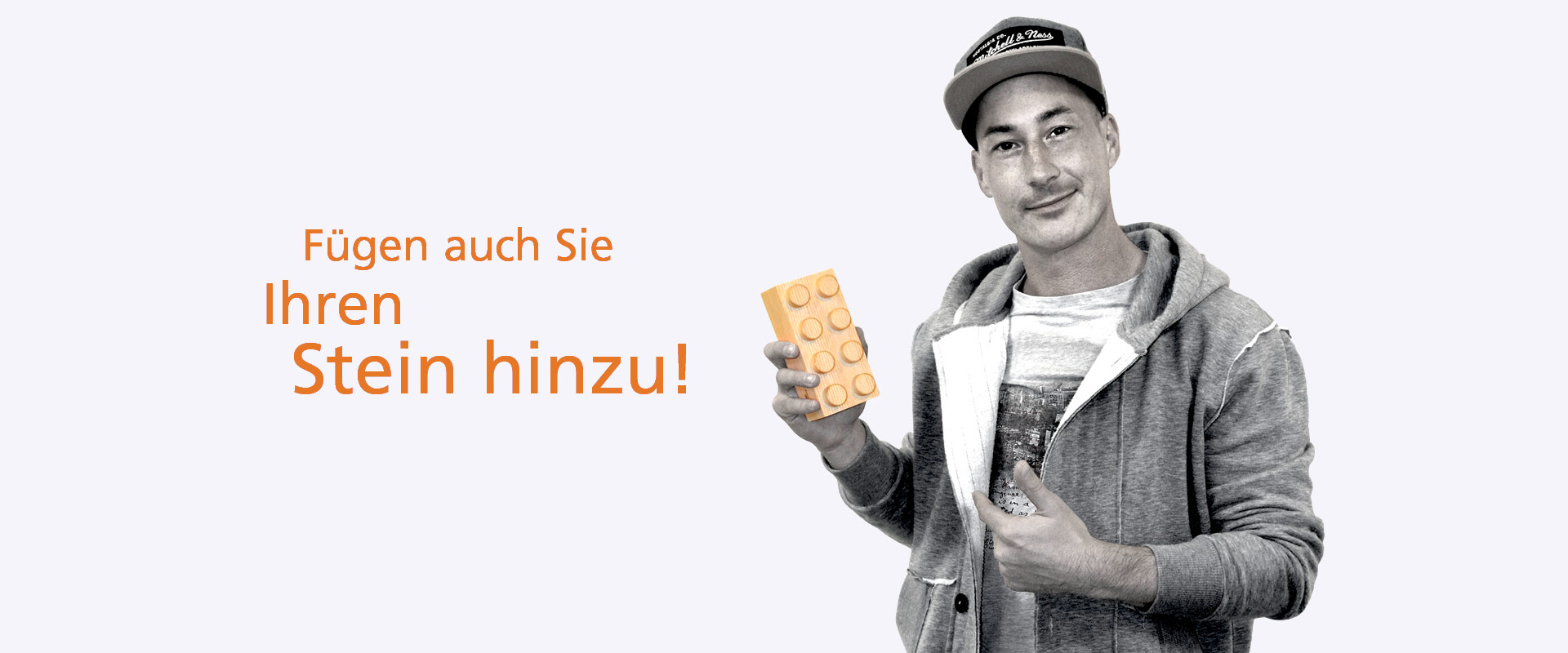 Dieses Familienbauwerk soll von der großen Gemeinschaft der Spender getragen werden, die alle einen Baustein beisteuern. Der symbolische Anteil-Stein ist sichtbares Zeichen der Aktion. Jeder Spender bekommt seinen eigenen nummerierten „Stein“ aus massivem Tannenholz als Dankeschön. Und jeder Spender wird mit seinem Stein in dem Buch „Wir sind das Bauwerk“ abgebildet. So treten viele Spender ins Bild und regen durch ihre Gemeinschaft weitere Spender an. Das Mitbauen macht Schule, so dass weiter Ausgaben des Buches die wachsende Zahl der „Mitbauer“ zeigen wird.