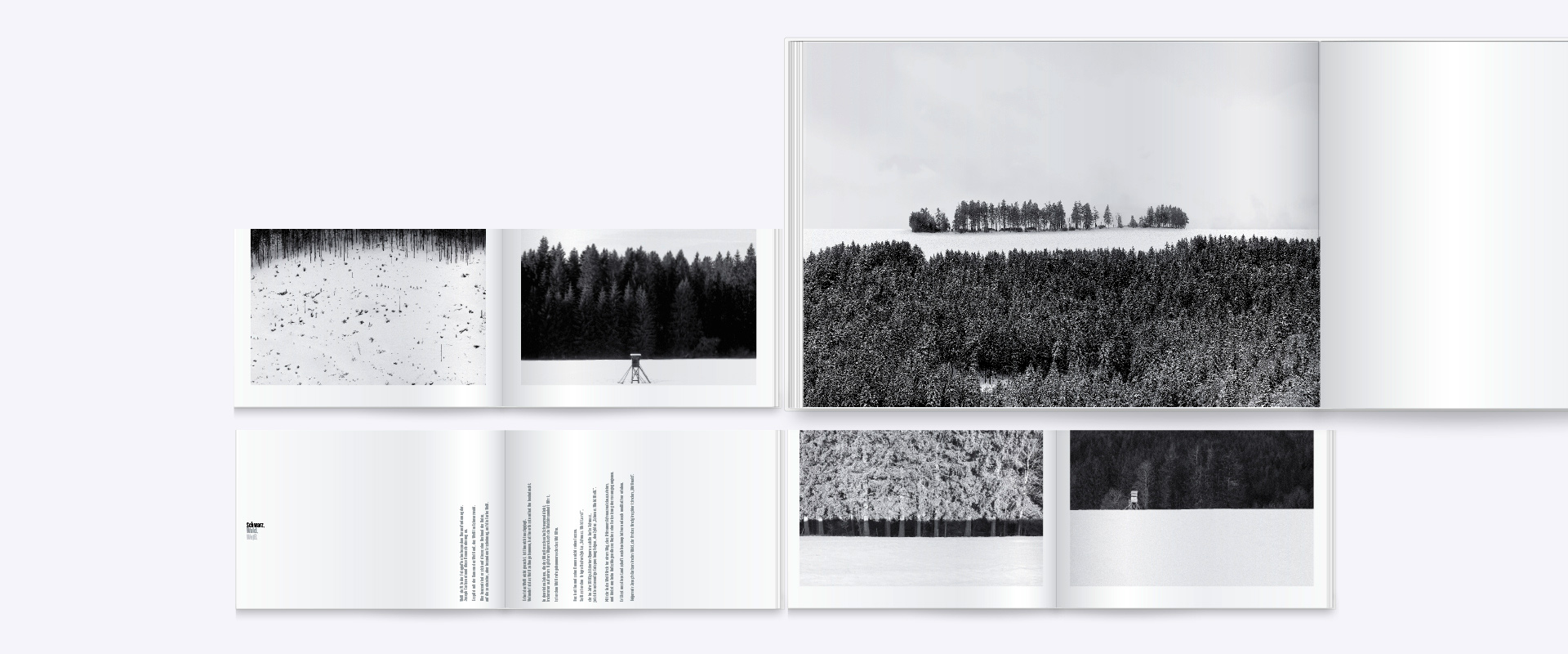 Das hat ihn und seine Kamera nicht ruhen lassen. So lässt er dem fotografischen Zyklus „Schwarz.Wald.Land“, der im Jahr 2016 publizierten Hymne an die Farbe Schwarz, jetzt die notwendige Entsprechung folgen, den Zyklus „Schwarz.Wald.Weiß“.